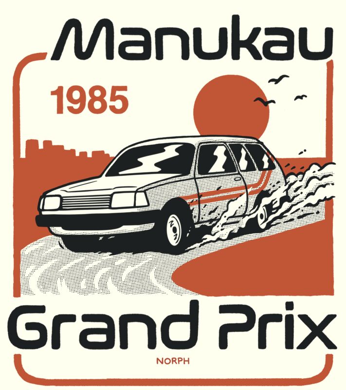 Vintage motorsport feels with a local lean. This design is a slick tribute to speed, noise, and Kiwi car culture — whether it’s burnouts, rally stages, or just the joy of driving. For classic car lovers and petrolheads, this tee is the perfect pit stop.